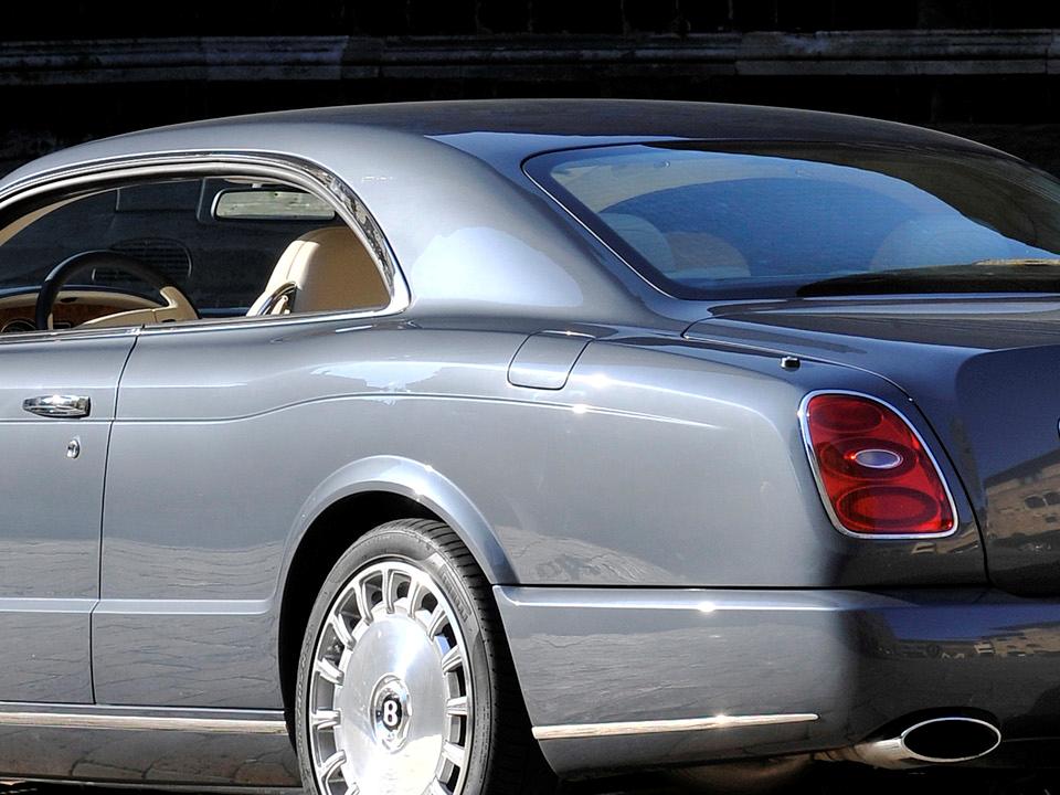 The Brooklands flowing body lines come from coach building skills and craftsmanship from the artisans at Crewe. The Brooklands is a large coupe based on the Bentley Arnage with traces of the Bentley Azure. The Brooklands sports a lower profile than the Arnage saloon with a lower roofline and steeply raked rear sail panels. The pillar less side glass lends a sophisticated airiness making the car appear even larger and more luxurious. The Brooklands waist rail is positioned lower than the Arnage, adding a graceful curve connecting the front and rear wheels. The LeMans wing vents behind the front wheels prove its authority. The base price for the Bentley Brooklands started at $340,990.