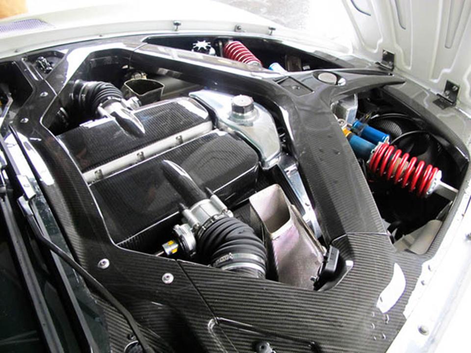 The engine is mid-mounted in the front with a new designed dry sump oil system. It’s mounted 100 mm lower than any previous Aston Martin V12 which in turn lowers the center of gravity. The transmission is a rear drive six speed automated manual gearbox with auto shift. It utilizes a magnesium alloy torque tube with carbon fibre propeller shaft and a limited slip differential.