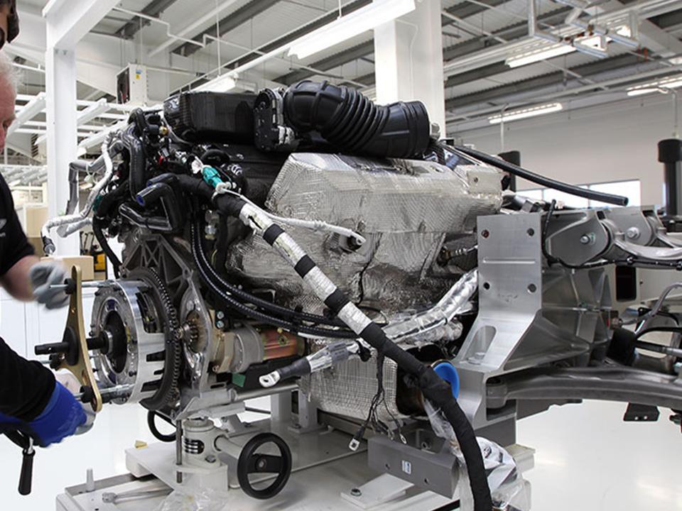 The One-77 gets its power from a naturally aspirated alloy quad overhead camshaft, 48-valve 7.3 litre V12. The engine cranks 750 hp @ 7,800 rpm with 700-750 Nm of peak torque @ 5,500 rpm. Longitudinal acceleration is rated as 0-60 mph in 3.3 seconds with a top speed in the 220 mph range.