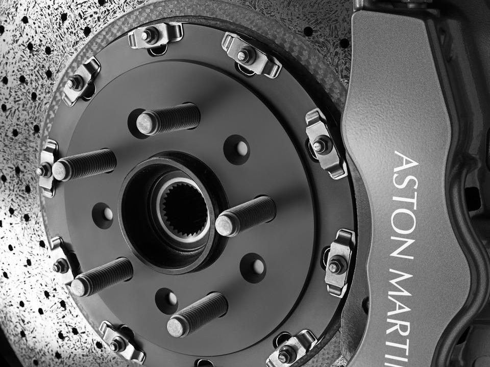The new Vanquish uses a third generation Brembo ventilated Carbon Ceramic Matrix (CCM) braking system which delivers shorter stopping distances and is fade resistant. CCM brakes are lighter which helps to reduce the vehicle’s unsprung weight. The front is fitted with 15.7” six piston caliper discs and fitted with 14.2” four piston caliper discs in the rear.