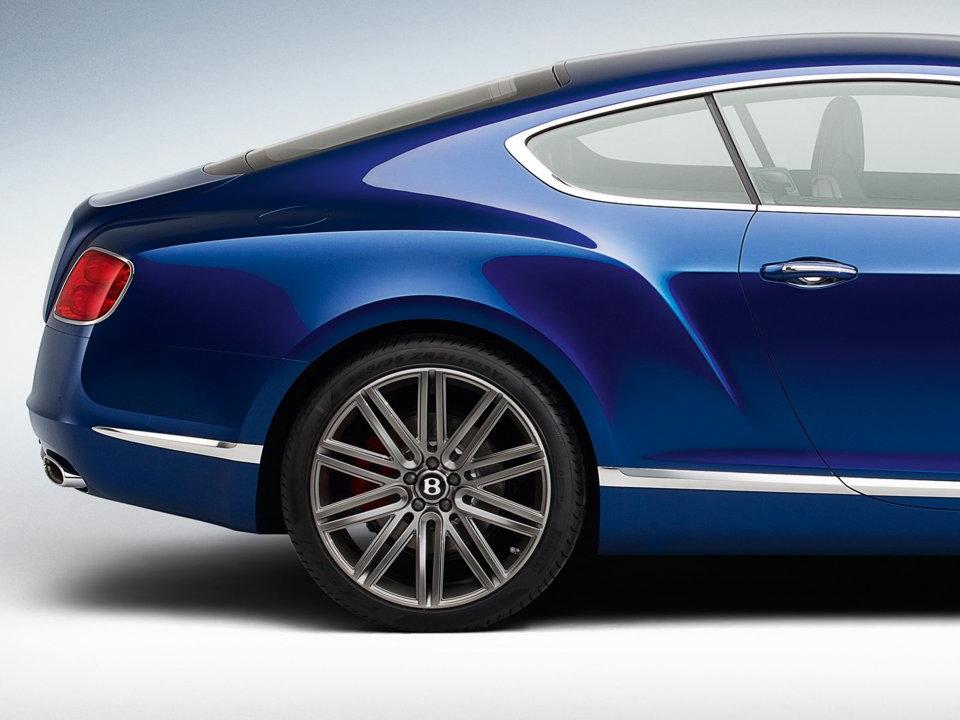 Continental GT Speed exterior signature cues are its exclusive 21-inch, ten-spoke alloy wheels, a dark tint matrix to the radiator shell and lower bumper grilles, with special chrome tipped aluminium exhaust tail pipes. The sound of the exhaust is tuned to a deep baritone when its formidable power is unleashed, or it can behave itself as the ultimate city cruiser with a more luxurious resonance.