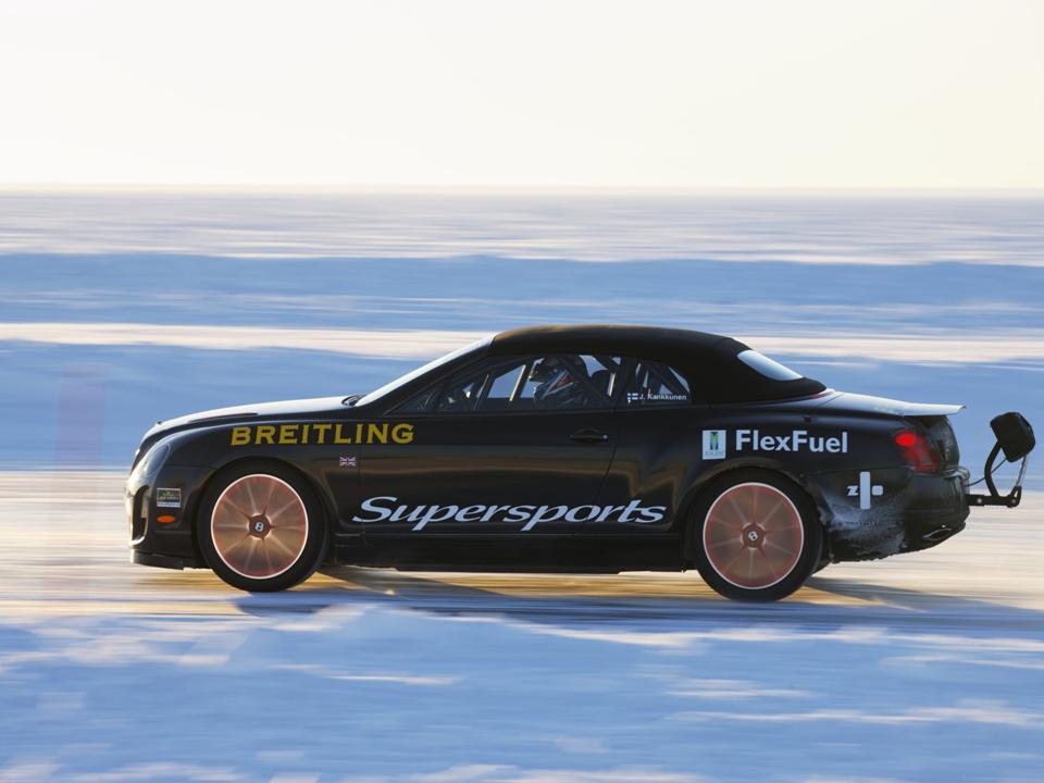 February 2011 Finnish motorsport legend Juha Kankkunen drove across the perilous frozen Baltic Sea off the coast of Finland, in the all-wheel drive bio-fuel powered 6-litre 12 cylinder Bentley Continental Supersports convertible. He achieved an average speed of 205.48 mph, thus, Bentley set the World Ice Speed Record. The Continental Supersports is the world’s fastest car on ice. Bentley engineers and professional drivers have used Finland’s extreme conditions to enhance the safety & handling capabilities for all of their cars.