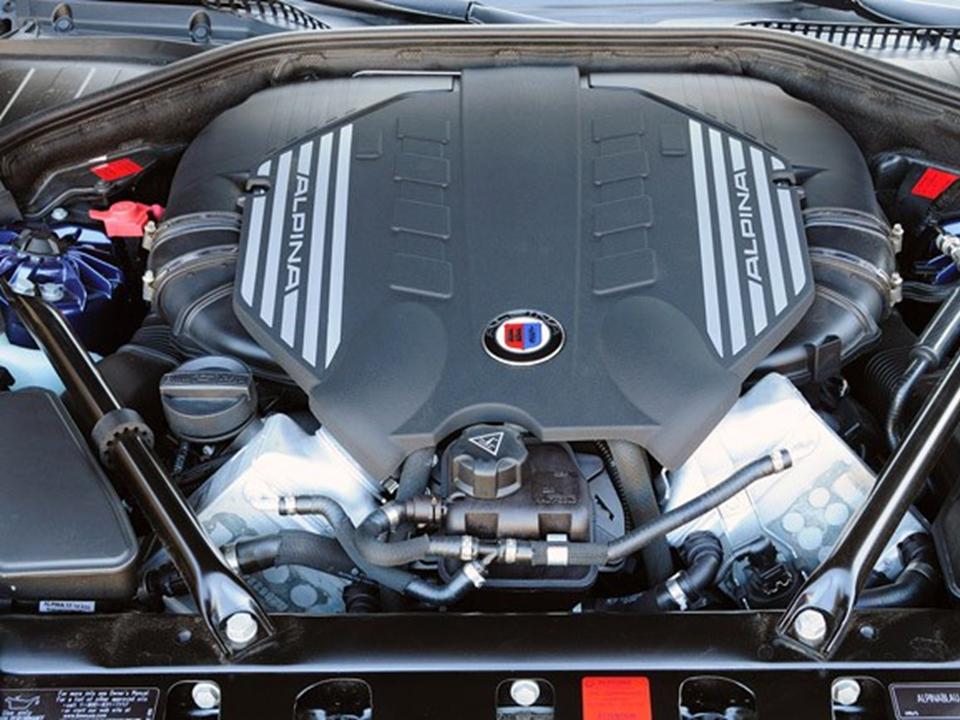 The BMW Alpina B7 is powered by a 4.4 litre Twin Power Turbocharged V8 engine mated to an eight speed transmission. This high precision Direct Injected power plant produces 540 bhp delivering 730 NM of torque. This is 40 horses over the 2013 model with 221 lb-ft more torque. It can accelerate from 0-62 in 4.3 seconds. Alpina modified the BMW N63 all-alloy V8 to accept the increase in power. High performance pistons with reinforced cylinder heads were added to withstand the additional stress from the higher compression ratio.