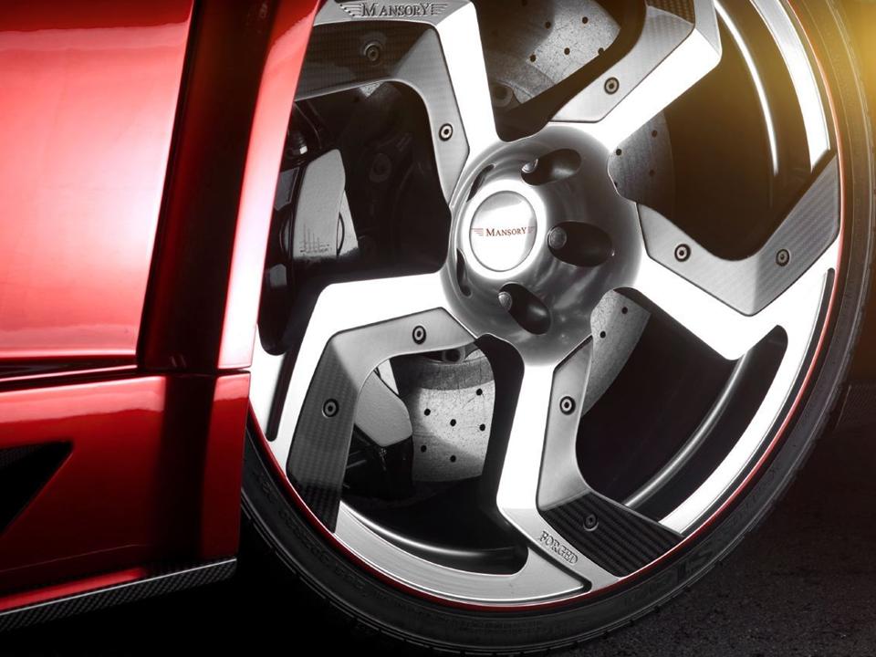 Mansory changed the wheels to ultra light forged rims with carbon-fibre inlays. 9.0 x 20 in the front and 13 x 21 in the back. Tire sizes changed as well to VA 255/30 ZR20 fitted to the front and HA 345/25 ZR21 in the rear.