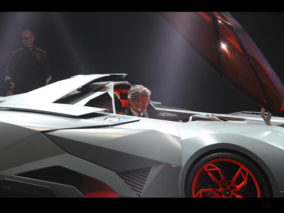 This supercar was introduced at the May 2013 gala celebration for Lamborghini’s 50th Anniversary in front of 1,000 invitees. The intro was as dramatic as the car’s styling. A cinematic entry was projected onto nine big screens in the room. The stage was transformed into a landing strip with a model in a flight suit guiding the arrival of the Egoista with ground crew light paddles and the roar of the V10 engine in the background. Then, the President & CEO of Automobili Lamborghini, Stephan Winkelmann emerged from the cockpit of the Lamborghini Egoista to an enthusiastic audience excited and in awe…