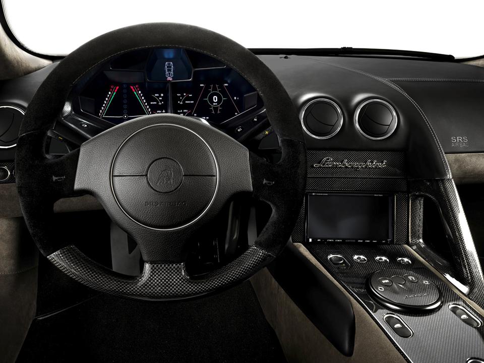 The electronic platform for the Reventón was developed by Automobili Lamborghini. The dash instruments are customizable. The robotized e-gear is controlled by two small levers behind the steering wheel. By selecting a button, the driver can switch to a quasi-analogical display where the classic circular instruments display speedometer and engine speed configured in an innovative way transformed into luminous pilot lamps of varying colors.