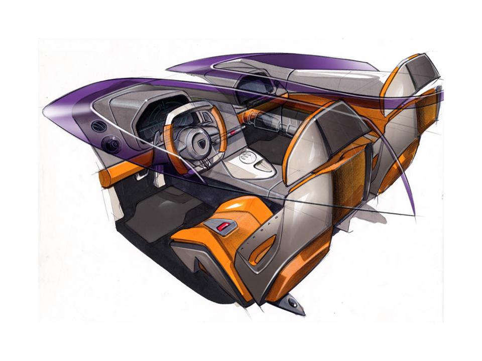 Classic single-seat racers didn’t use a traditional windscreen, but utilized a “sauté-vent” which directed the airflow over the driver’s head. The Concept S uses the same principle only with two dividing the cabin into two compartments for an aggressive futuristic look. This division creates an additional air inlet for the mid-mount engine positioned behind the seats. With its front & rear spoilers, and large rear diffuser, aerodynamic efficiency is optimized. The Lamborghini Concept S has an ingenious retractable electronically operated rear view mirror…..why you ask is it retracted out of view right……well, why would one need a mirror when nothing else could possibly catch up with you?