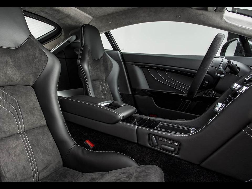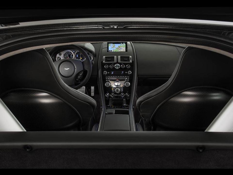 The V12 Zagato uses the minimalist approach to the interior. Zagato stitched logos, satin lacquered carbon-fibre accents, and switches made of glass make a tasteful contemporary look for this limited edition supercar. Standard are dual-stage driver/passenger front airbags, powerfold exterior heated mirrors, heated backglass and automatic temperature control. It is equipped with a Premium Audio System with Dolby Pro Logic, integrated Apple iPod connector 5, USB connector with waveform audio format and windows media player.