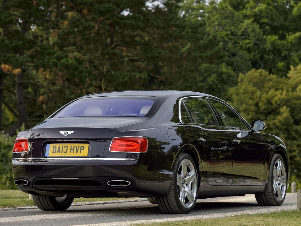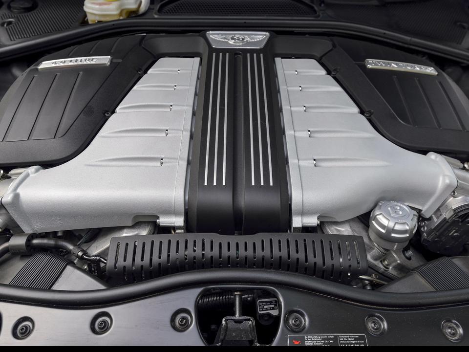 The Bentley Flying Spur has a lightweight alloy 6-litre 48-valve four cam twin-turbocharged W12 engine that moves this performance limo with a top speed of 200 mph. This 12 cylinder power plant produces 616 bhp @ 6,000 rpm with 800 Nm peak torque. The Flying Spur leaps from 0-60 in just 4.3 seconds, which is awesome coming from a 5,000+ pound behemoth. It uses a Bosch ME 1 7 interface as the new engine management system. The ZF eight speed transmission drives all four wheels with a 40:60 rear biased torque split.