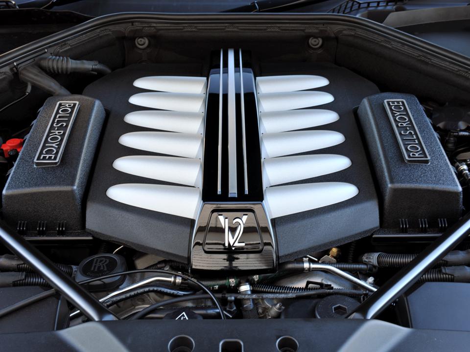 The Ghost’s power comes from a BMW based 6.6 litre twin-turbocharged V12 that delivers 563 horses @ 5250 rpm. It springs from 0-62 in 4.7 seconds with a top speed of 155 mph. It rides on a double wishbone front suspension with a multi-link rear utilizing a four-cornered air system that is completely self leveling. It employs an electronic variable damping system that is so sophisticated that it can detect the movement of a single passenger and adjust itself accordingly! Sure footed confidence stems from a series of complex electronics like anti-roll stabilization, dynamic brake control, and dynamic traction control which includes cornering brake control.