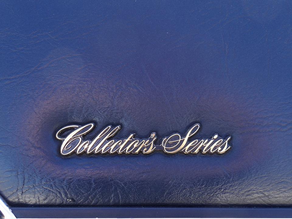 It was available in Diamond Blue or Jubilee Gold. The color chosen was repeated throughout the car. The color scheme included special clear coat paint, vinyl cladding to the lower premium body side moldings, the vertical bars in the grille, bumper guards & run strips, turbine vaned cast aluminum wheels, and a matching vinyl insert mounted to the rear deck lid around the ersatz spare tire in a semi-circle.