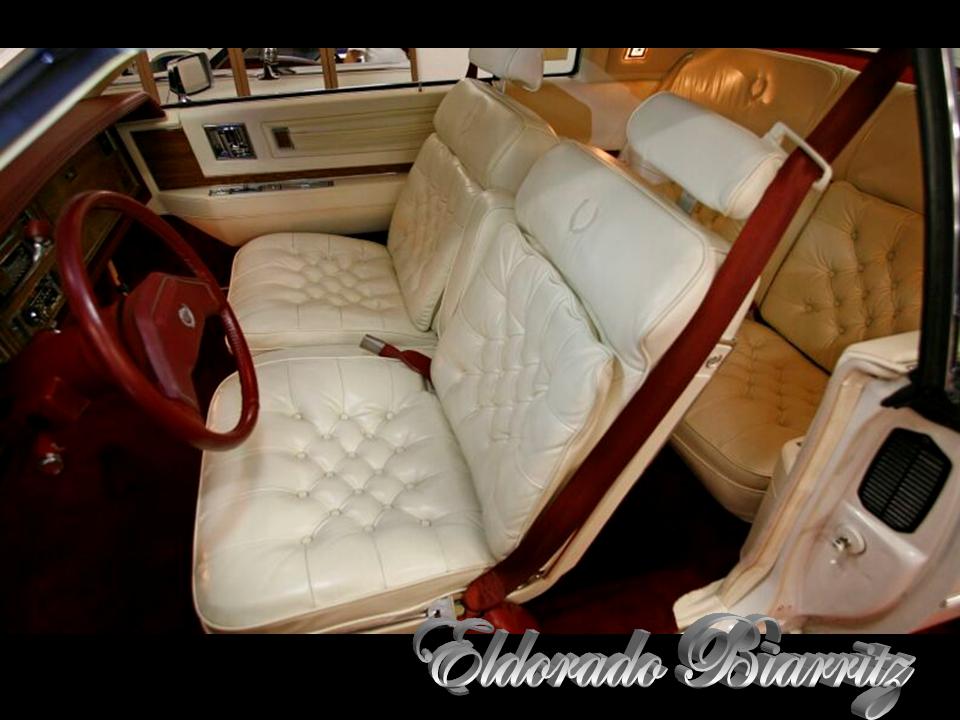 A popular option for the 1980 Cadillac Eldorado was the “Biarritz” luxury package. Exterior signature features included a brushed stainless steel roof cap covering the forward portion of the roof, a padded landau vinyl roof with “Biarritz” script and opera lamps on each rear sail panel, cast aluminum wheels, and distinctive accent striping. The Biarritz interior featured tufted pillow-style seat cushions trimmed in leather or an elegant knit cloth, plush Tampico carpeting, and individual rear reading lights. The Biarritz was the look that set the ultimate Eldorado apart from the rest.
