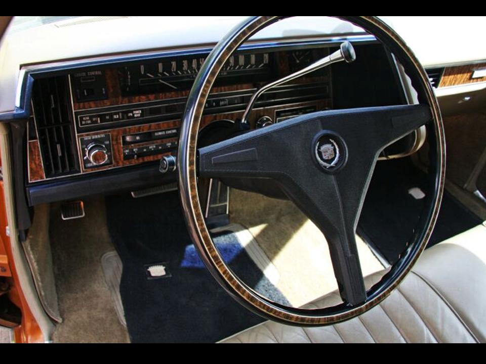The engine was equipped with a Rochester 4MV 4-bbl down-draft Quadrajet carburetor with equalized manifold, mechanical fuel pump, dry-type air filter, improved automatic choke, and a controlled combustion system to reduce exhaust hydrocarbons. This formidable V8 sprinted from 0-60 mph in 7.6 seconds, 0-100 mph in 20.5 seconds, and had a top speed of 126 mph. It did the ¼ mile @ 89 mph in 15.6 seconds. The engine was mated to GM’s Turbo Hydra-Matic THM 425 3-speed automatic transmission. What a way to travel Cadillac style in the spirited seventies.