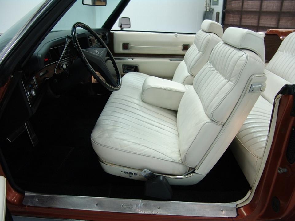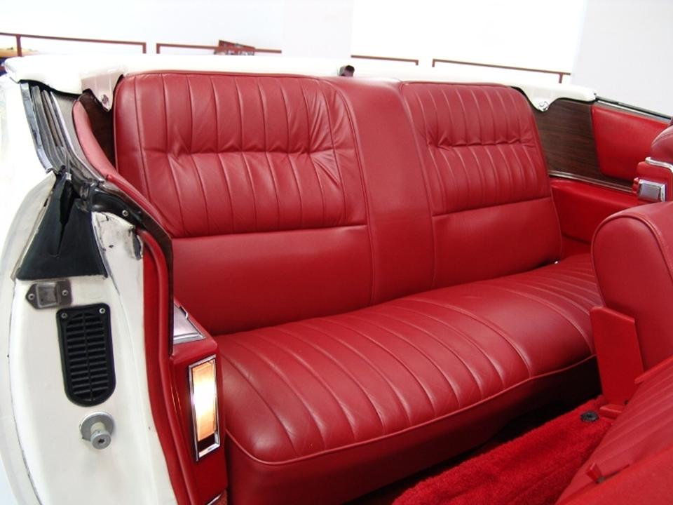 Its innovative inward folding convertible top provided full width rear seating. The fully automatic power folding fabric roof stowed away neatly in its locker behind the rear seat. It didn’t intrude the trunk space either. The interior was upholstered in supple Sierra grain leather by Fleetwood. Nine color combinations were available. Also standard were power windows, power seat, and a fibre-glass parade boot reminiscent of the 1953 Eldorado convertible.