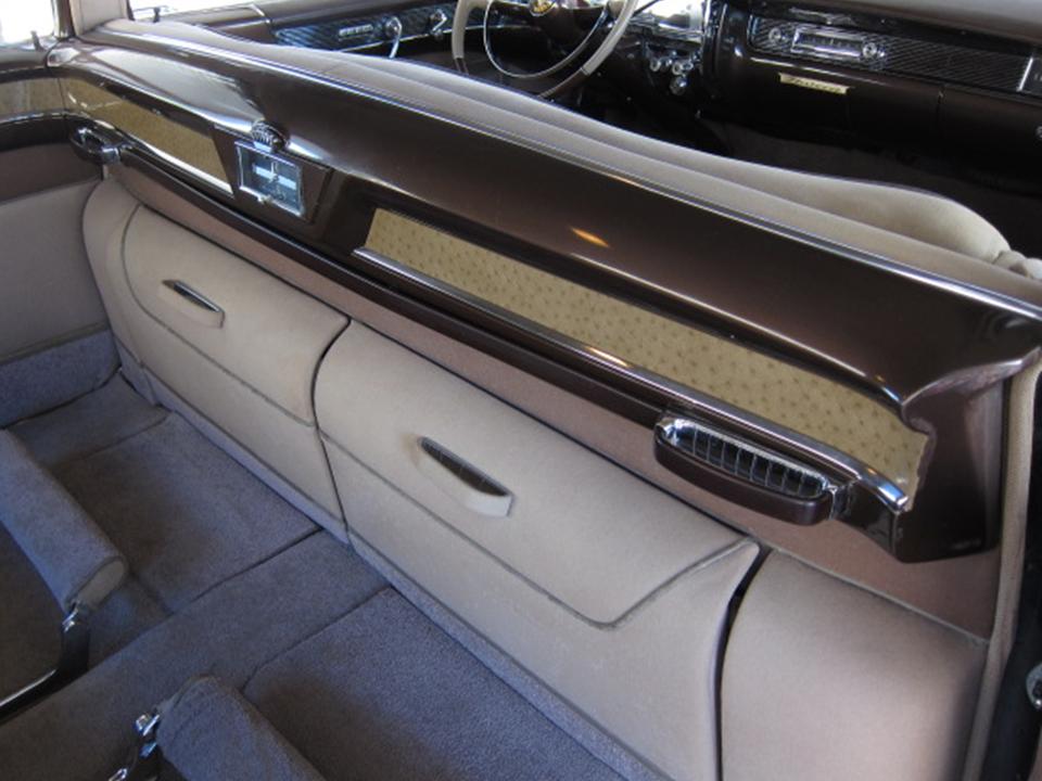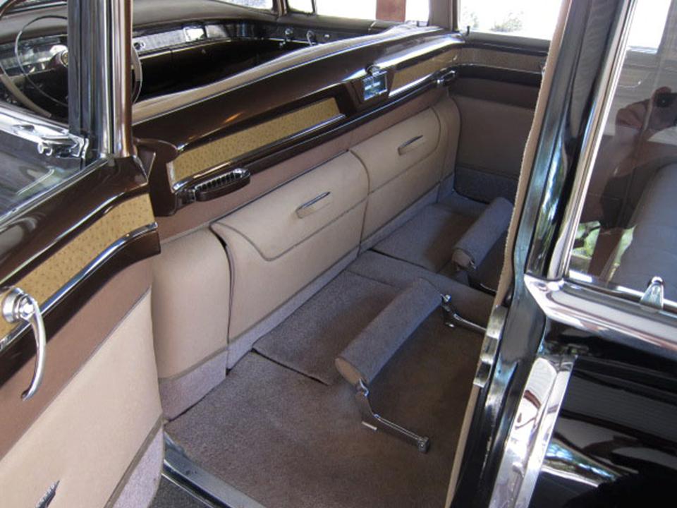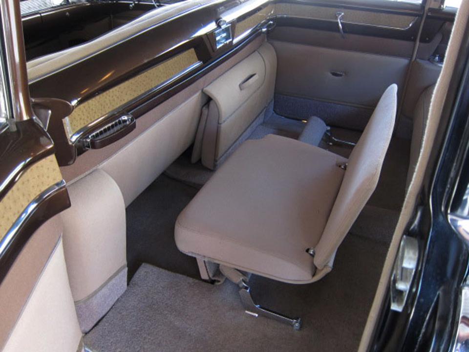The interior was furnished as limousines from the period. Tasteful understatement was the ambiance. Light toned Bedford cord or elegant broadcloth was upholstered in a luxurious biscuit tufting. Three dignified color combinations were available.