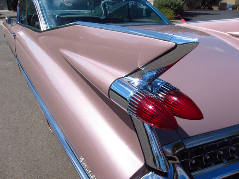The only 1959 Cadillac to have chrome taillight spears was the Fleetwood Series Sixty Special sedan. I believe some dealers offered this as a dealer installed option on other Cadillacs, but even the Eldorado Biarritz had painted tail spears.