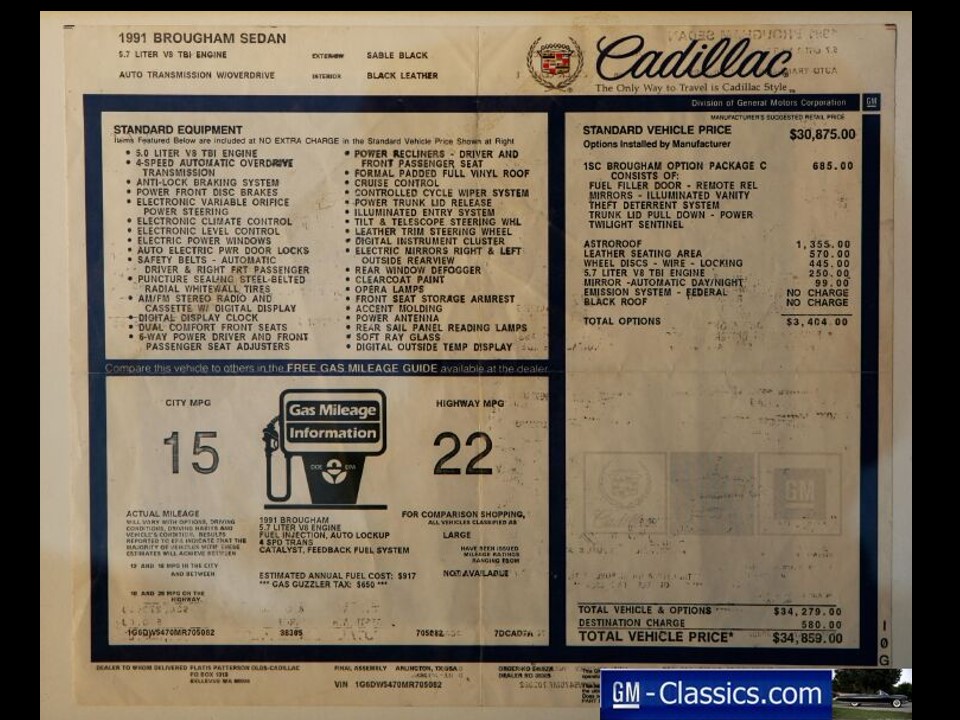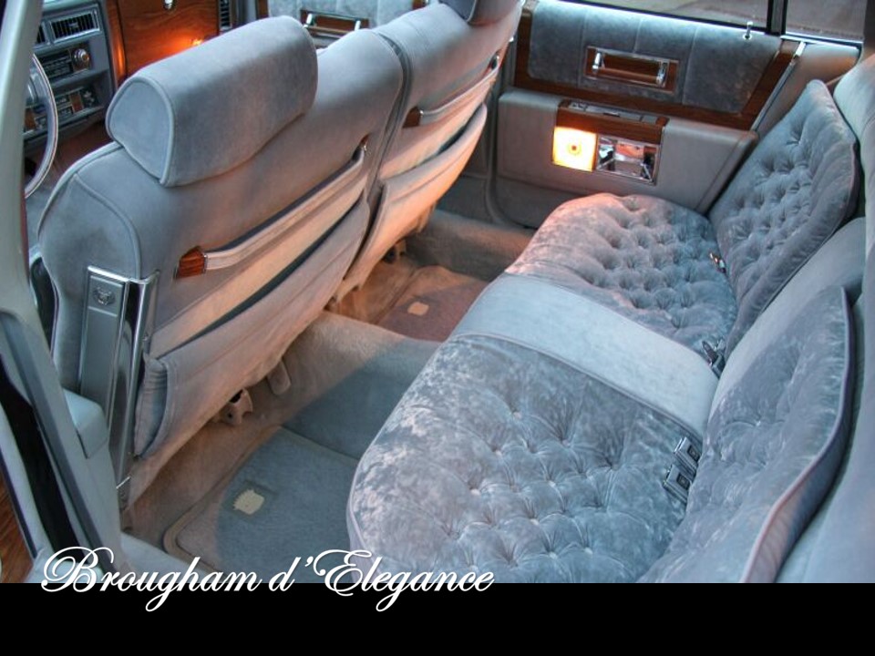 Comfort was always the hallmark of the Cadillac Brougham. The 1990-1992 were no exception. Brougham’s first-class accommodations included a vast array of standard amenities. Like the advanced Electronic Climate Control system, automatic power door locks with central door unlocking feature, front and rear lamp monitors, a leather trimmed tilt & telescopic steering wheel, composite Tungsten Halogen headlamps, and an illuminated entry system are just a few of the features and accessories that were complimentary, pampering the owner Cadillac style. Cadillac offered more comfort & convenience features as standard than any other luxury brand. The Brougham d’Elegance option added even more refinement such as a hand button tufted sew style to the upholstery, embroidered “d’Elegance” scripts on the door panels, power trunk lid pull-down, illuminated visor vanity mirrors for both driver and front seat passenger, and “d’Elegance” identification to the exterior.