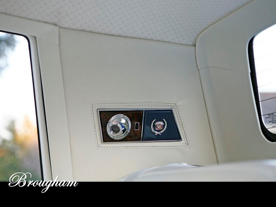 Leather upholstery was optional and available in several color combinations. A fully padded vinyl roof was standard for both Brougham models using the premiere roof treatment with closed-in rear vent windows. The outside rearview mirrors were heated and power adjustable. The instrument panel had digital display. Cruise Control was a standard feature to reduce driving fatigue on long road trips. Luxury and elegance were the constant companions to the driver and passengers of the fabulous Cadillac Broughams. The Cadillac Brougham had a reputation as “Luxury car complete.”