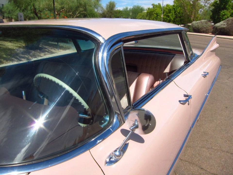 With precise craftsmanship and such universal appeal the 1959 Flat Top Sedan deVille was a totally new concept in fine car design. This one is finished in the 1950s popular “Wood Rose.” There were songs sung about the fabled “Pink Cadillac” all throughout that decade. The Cadillac motorcar was a true legend, the iconic 1959 was the most “NOTORIOUS” Cadillac ever….