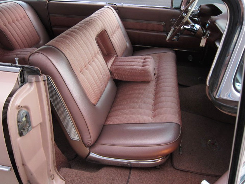 The 1959 Flat Top used a large panoramic rear back glass that gave full view of those fabulous fins making parking (lest we forget…backing) easier, after all….we’d hate to mow-down that little car behind us with those fins, that would not be pretty. (Imagine….life in prison for vehicular manslaughter by shish-kabobbing the family in the wagon behind you with those fins!)