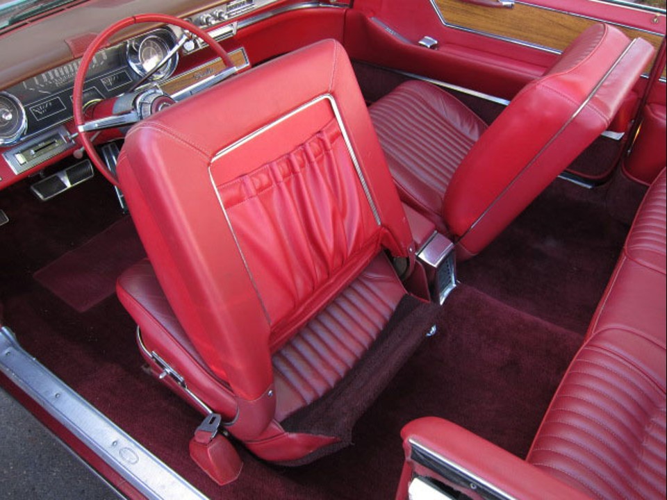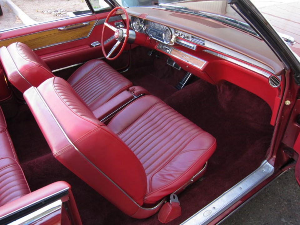The convertibles for 1965 included a stretchable pleated top boot with a self-adhering edge that eliminated the sliding channel mounting assuring a sleek fit. Standard equipment included power windows, power six-way seat, electric clock, courtesy lighting, anti-glare rearview mirror, red reflectors at the bottoms of each door for safety, front seat belts, heater/defroster, and whitewall tires. Popular options for 1965 were: Comfort Control air conditioning, controlled differential, power door locks, door edge guards, Guide-Matic headlamp control, AM/FM radio, Soft-Ray glass, Tilt & Telescopic steering wheel, Twilight Sentinel, and remote trunk lock release.