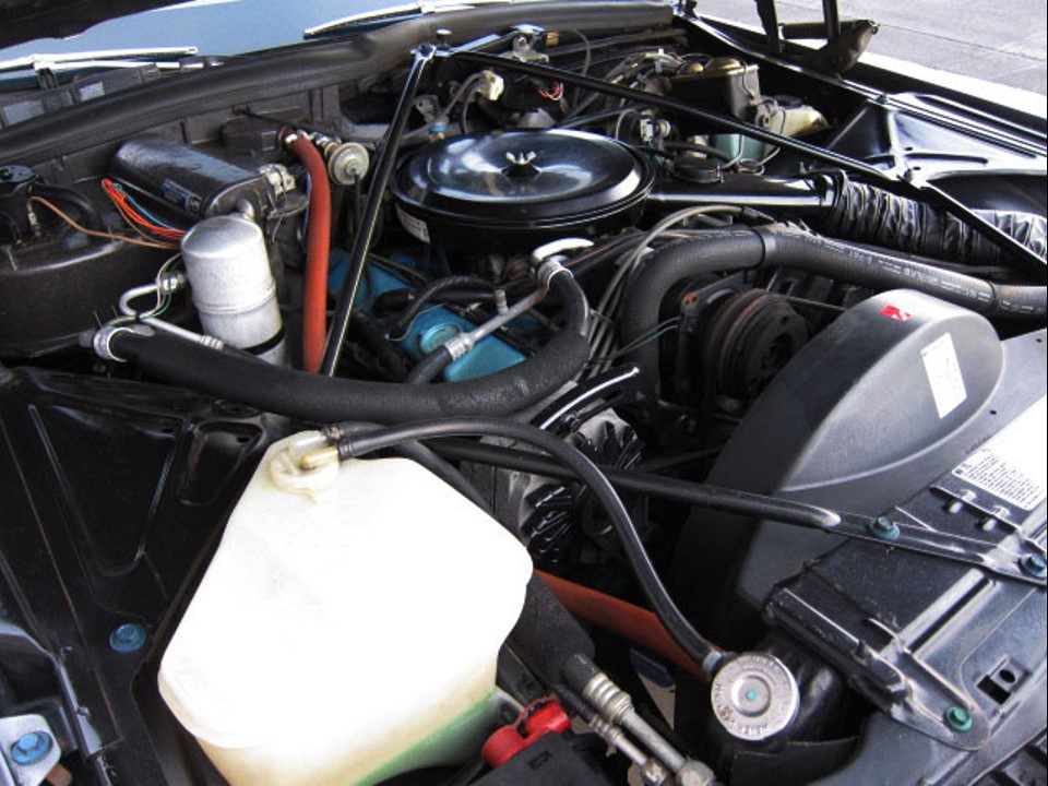 The 1979 Coupe deVille was powered by Cadillac’s 7.0 litre 425 CID 16-valve OHV V8 engine mated to GM’s Turbo Hydra-Matic THM-400 3-speed automatic transmission. The engine had a cast iron block and heads, five main bearings, and hydraulic valve lifters. It produced 180 hp @ 4,000 rpm with 434 Nm of peak torque @ 2,400 rpm.