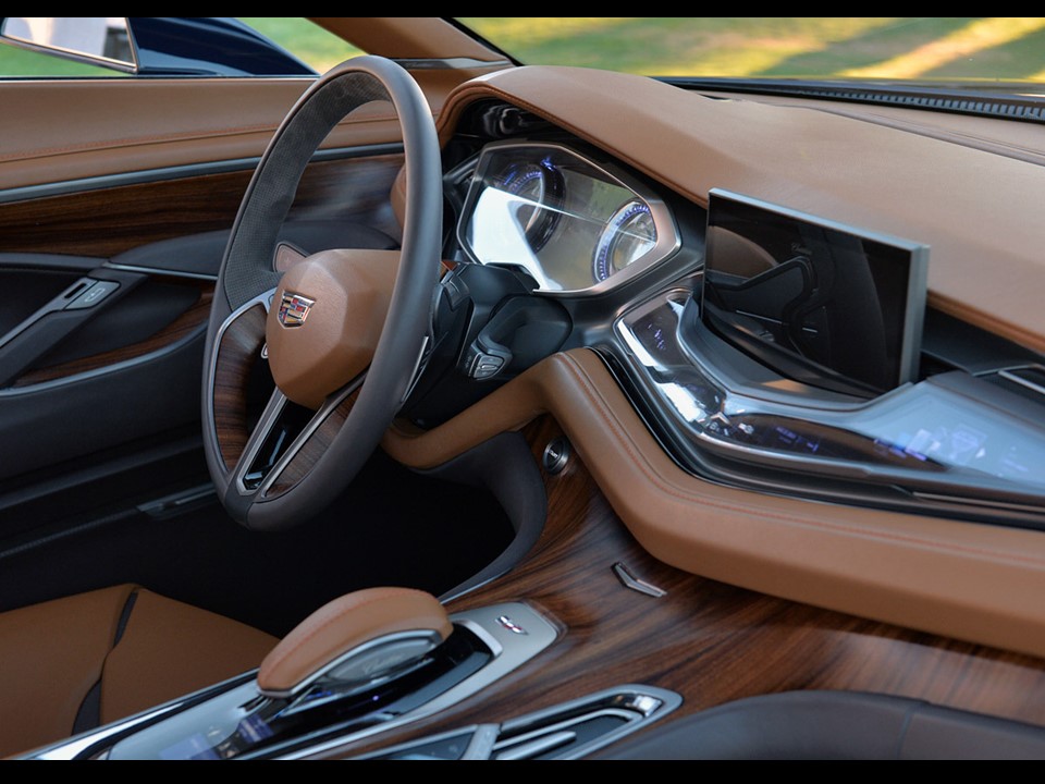 The Cadillac Elmiraj grand coupe’s driving dynamics include large 22” X 9” aluminum wheels. It is equipped with four-wheel carbon ceramic disc brakes with monobloc opposed piston calipers. GM’s 4.5 litre twin-turbocharged V8 engine powers the Elmiraj. This exclusive powerplant is based upon the 420 hp V6 engine from the 2014 Cadillac CTS-VSport. It produces an estimated 500 hp with 678 Nm of peak torque.