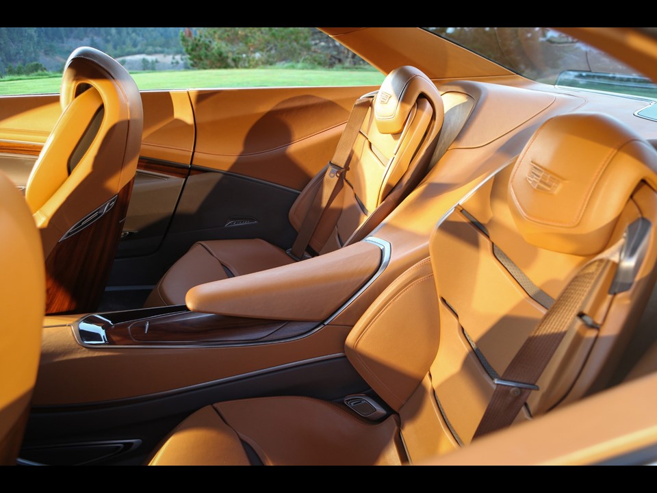 The Elmiraj has an interior inspired by famous mid-century furniture designers Charles and Ray Eames. The unique creamy caramel leather upholstery and trim, puts the luxury of romance and glamour back into the Cadillac coupe. Its cabin reflects the elegance of the promised 21st century Flagship. It is evident in the articulated seat design, which is completely ergonomic.