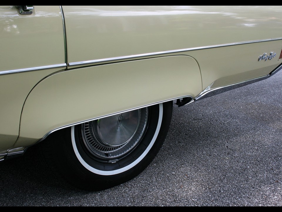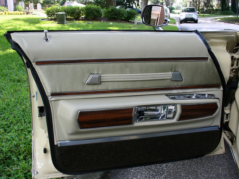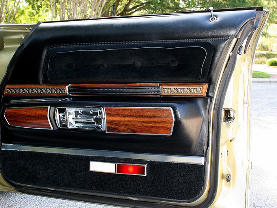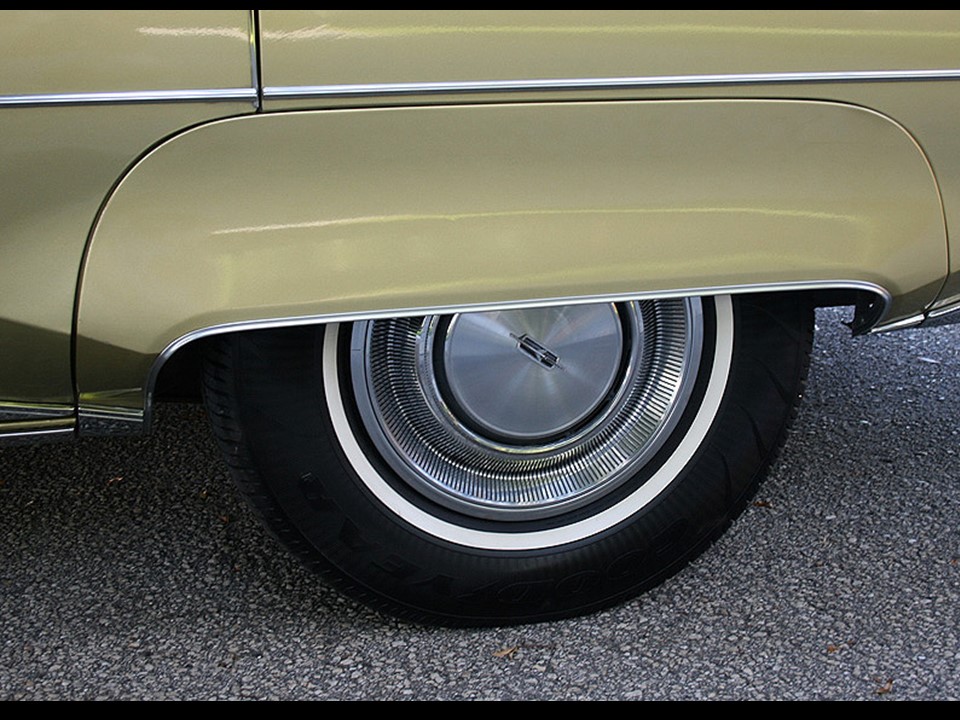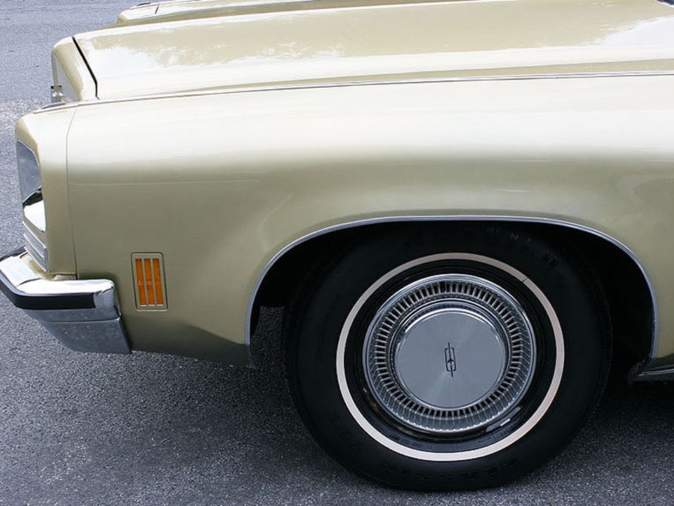 The 1972 Oldsmobile Ninety-Eight Regency was finished in a custom “Tiffany Gold” exclusive to the Regency. Vinyl roofs were standard and available in Gold, Black, or White. “Regency” nomenclature adorned the rear sail panels to further enhance the car’s luxurious identity. The 1972 Ninety-Eight Regency was available in the following color/trim schemes with Tiffany Gold as the body color: Black vinyl roof with Black interior, Black vinyl roof with Covert Gold interior, Covert Gold vinyl roof with Black interior, Covert Gold vinyl roof and Covert Gold interior, White vinyl roof with Covert Gold interior, and White vinyl roof with Black interior.