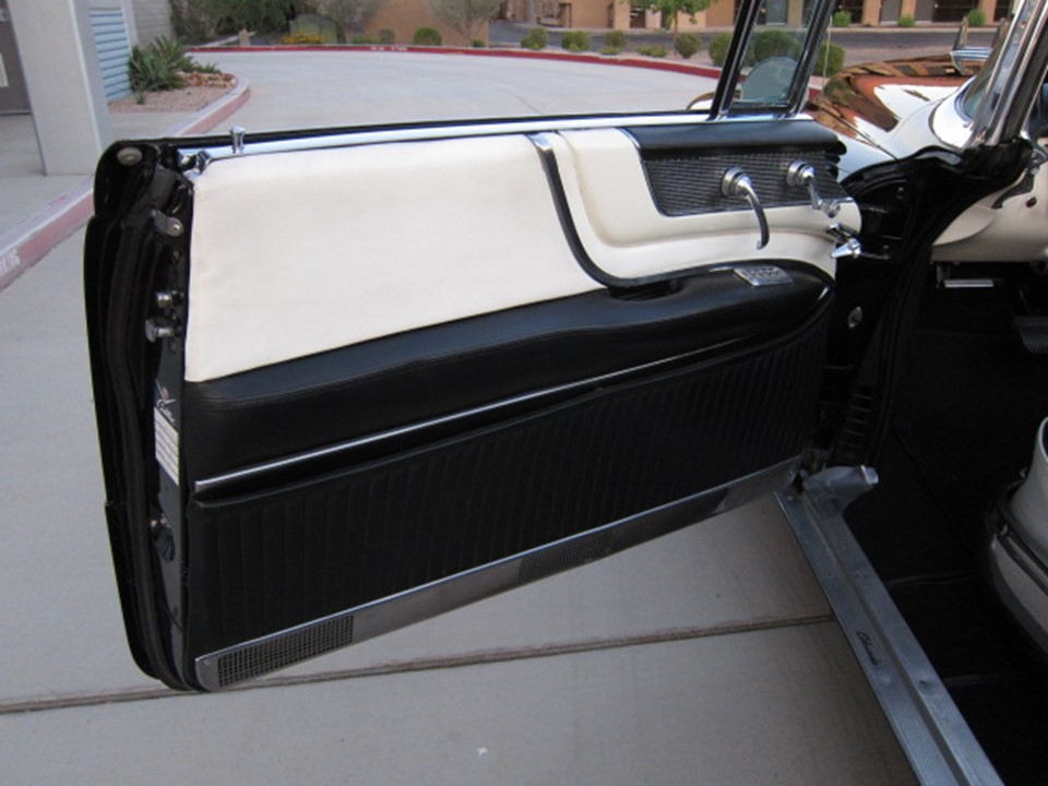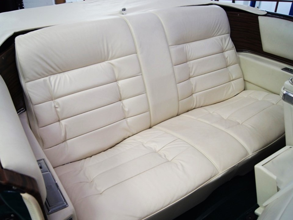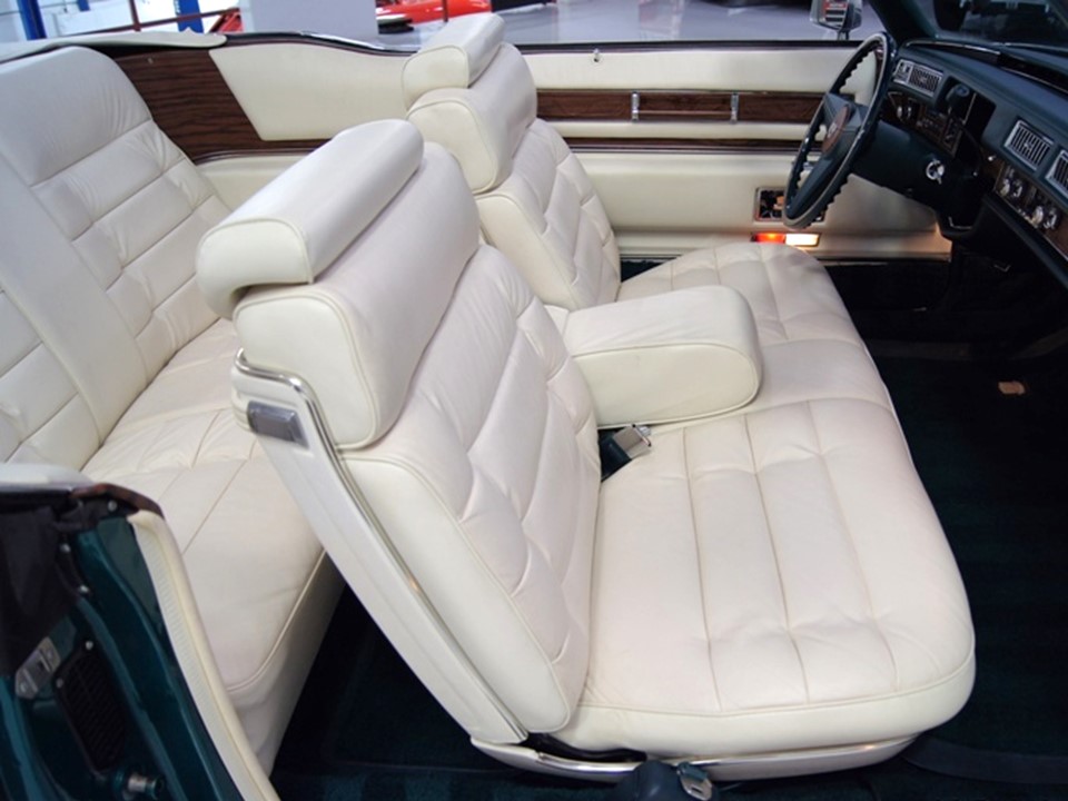 The Biarritz convertible came standard with genuine English grain leather upholstery. More standard features included; electric clock, courtesy lighting, heater/defroster, outside left hand remote controlled mirror, E-Z Eye 3-way inside rearview mirror, robe cords on front seat backs, windshield wiper/washers, and wide whitewall tires.