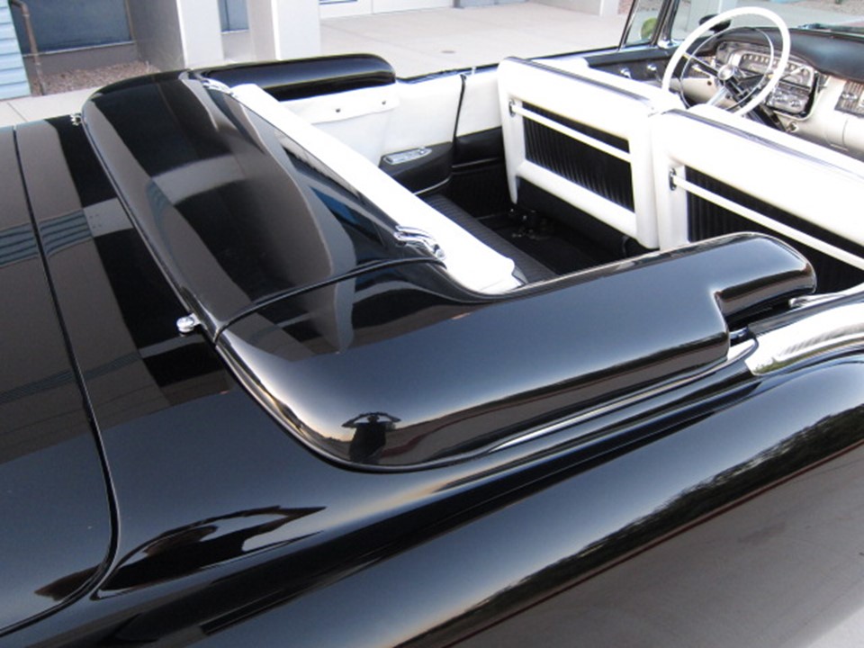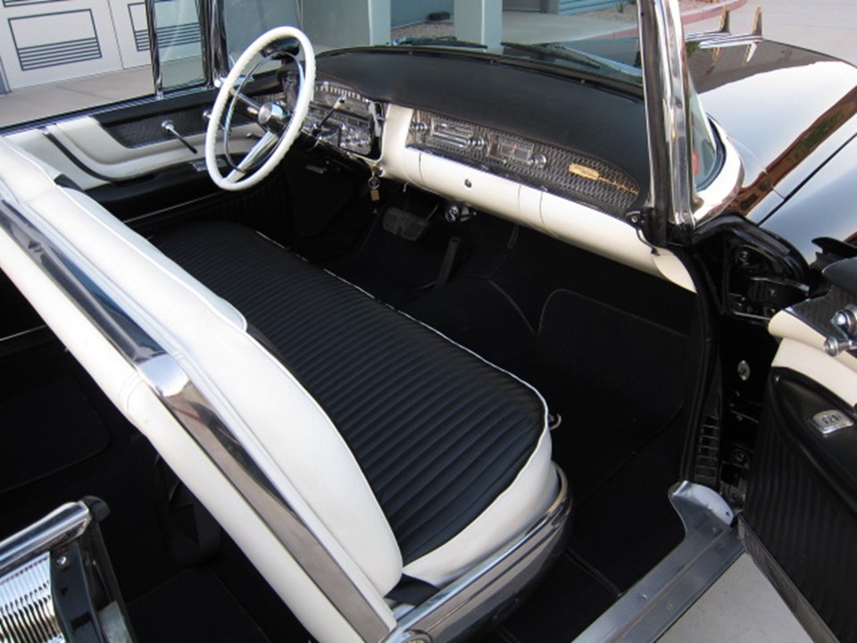 Because of its long wheelbase there was less ‘pitch’ to the car as it negotiated uneven pavement. This long wheelbase provided more interior legroom both front and rear. The excellent framework for the 1956 Eldorado Biarritz resulted in a near 50/50 weight distribution which assured greater traction for all four wheels with greater control rounding curves and surer more positive braking. Contributing further to the road-hugging qualities of the 1956 Eldorado Biarritz was the lower center of gravity that is so important to convertibles to resist rollovers.