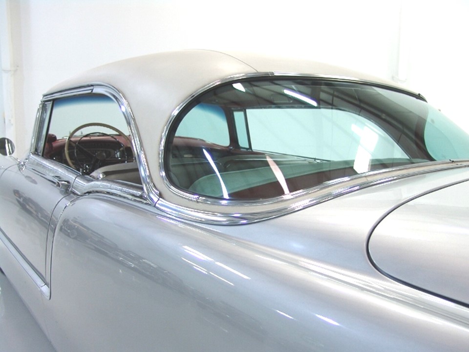 The Panoramic Windshield, imitated in the auto industry was pioneered by the Cadillac Eldorado in 1953. The front corners of its design were moved back to a more vertical position giving the driver more visibility eliminating the traditional blind spots. The windshield was made of laminated safety plate glass as were the side windows. The backglass was tempered plate glass. This assured maximum safety for the vehicle occupants.