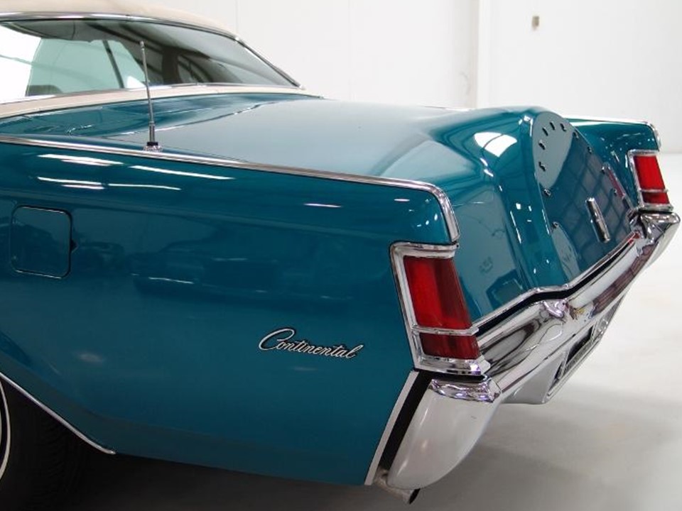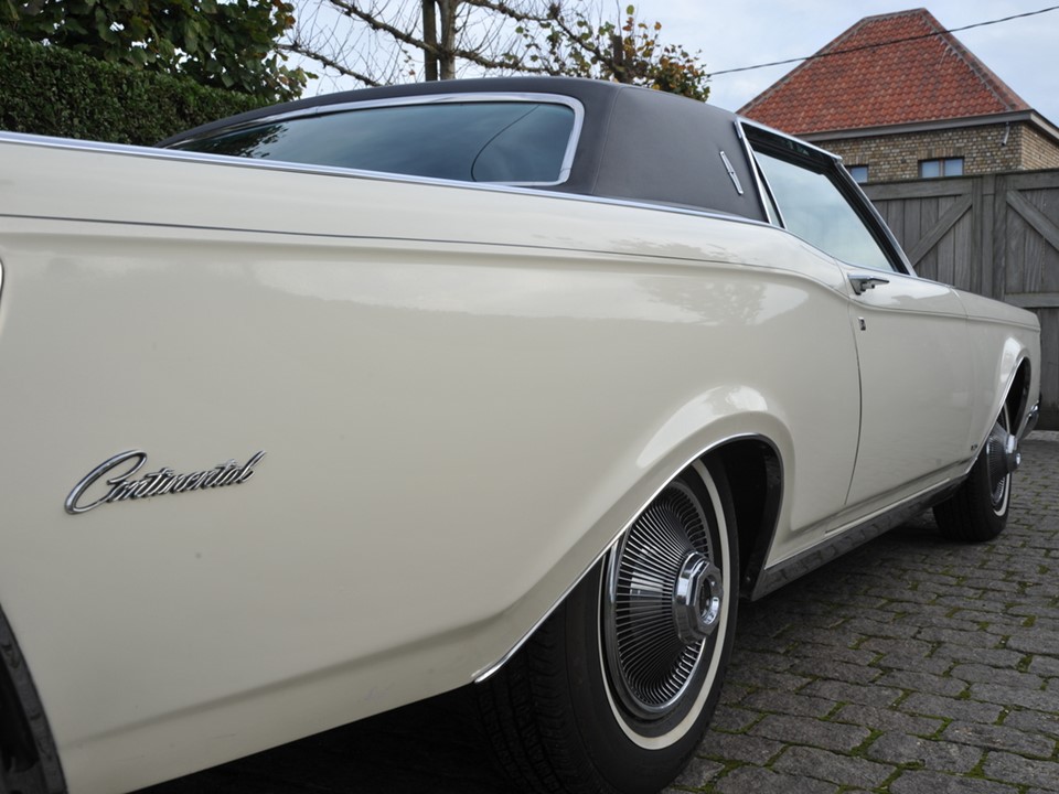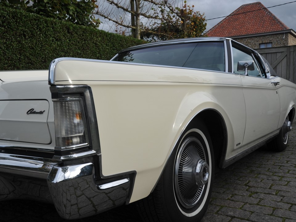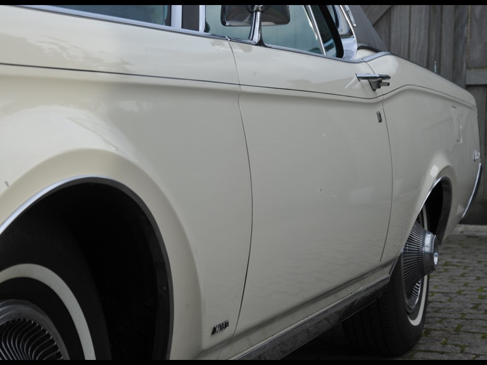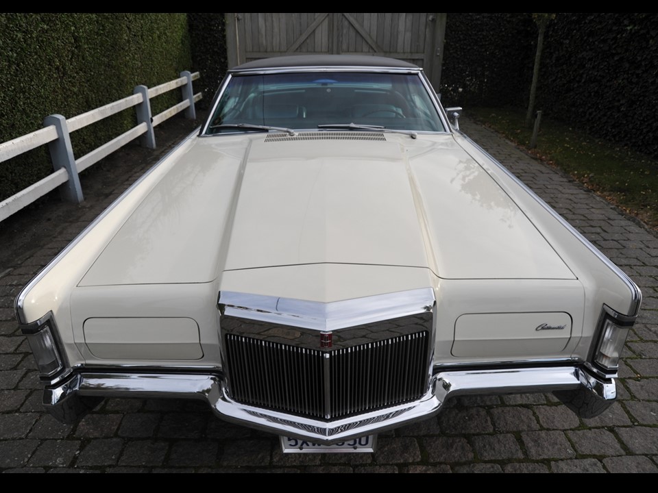 The Continental MK III was the latest in the series of impeccably crafted motorcars that was built from 1969 through 1971. The bold front end design was highlighted with concealed dual headlamps and a Rolls Royce style radiator grille. Its long low-slung silhouette was augmented by knife-blade fenders running the length of the architecture.