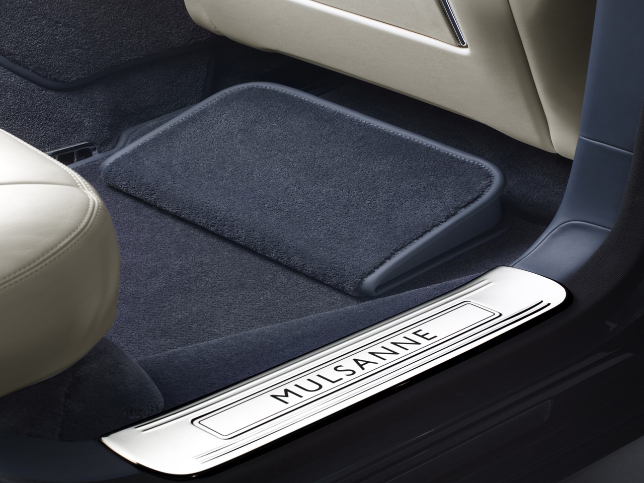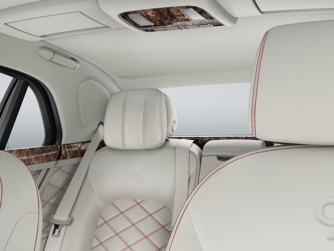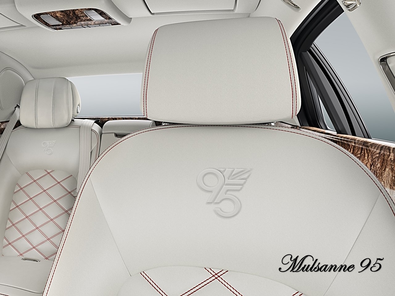Signature Mulsanne 95 features include illuminated door tread plates that display a “Ninety Five” script and the British Union Jack. The front and rear seats have embroidered “95” emblems as well as the passenger side fascia panel.