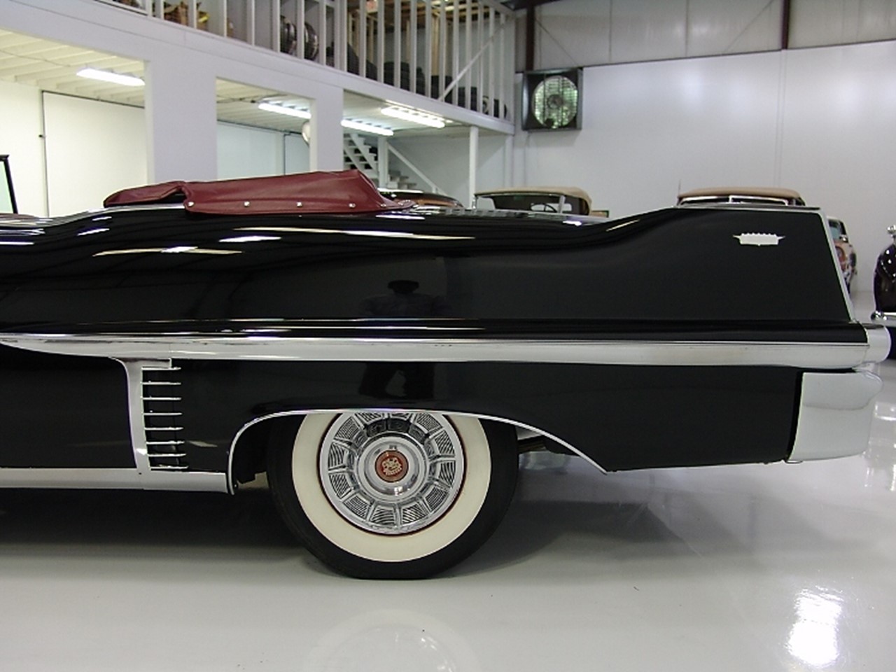 The convertible’s silhouette was highlighted by chrome-framed wheel openings and extended contour lines to both front and rear fenders. The fender skirts were dropped for a cleaner more contemporary look at the time.