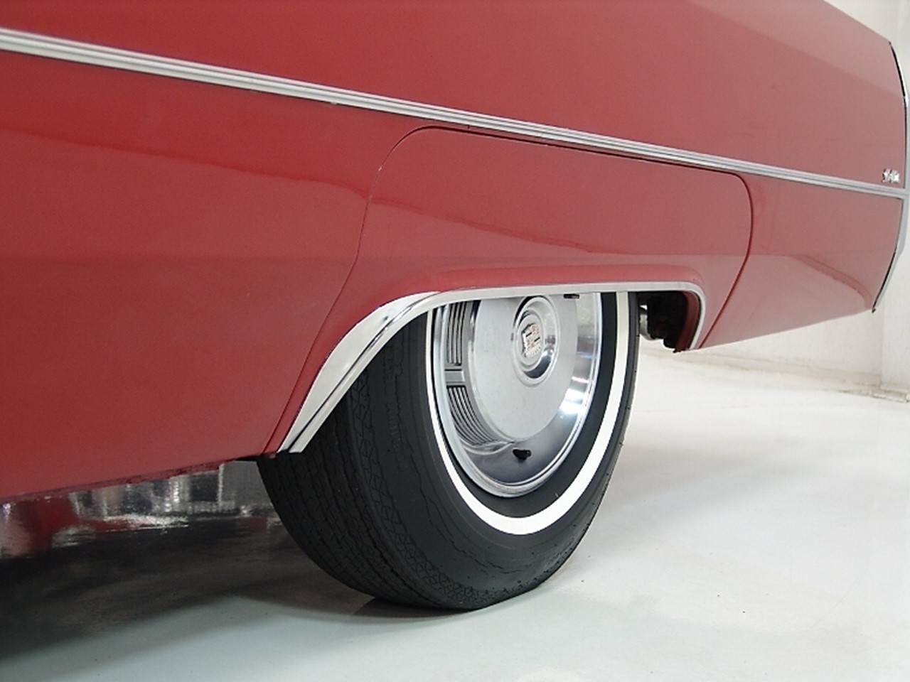 Two additional frame braces forward added strength, rigidity, and quietness. The frame was cambered to match engine and body loads giving even distribution on all body mounts, and improved alignment of frame to body. New arrangement of body mounts assisted in substantial noise reduction. The 1966 Cadillac DeVille convertible was a very large front engine rear drive vehicle. It rode upon a long 129.5” wheelbase, had the luxury length of 224”, and was 80” wide.