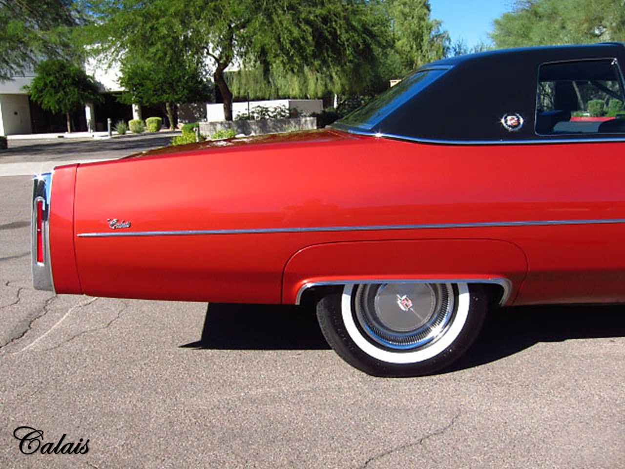 The Calais differed from the DeVille by the absence of the stainless-steel chrome lower rocker moldings of the DeVille/Fleetwood Series. This was the only exterior difference between the model hierarchies.