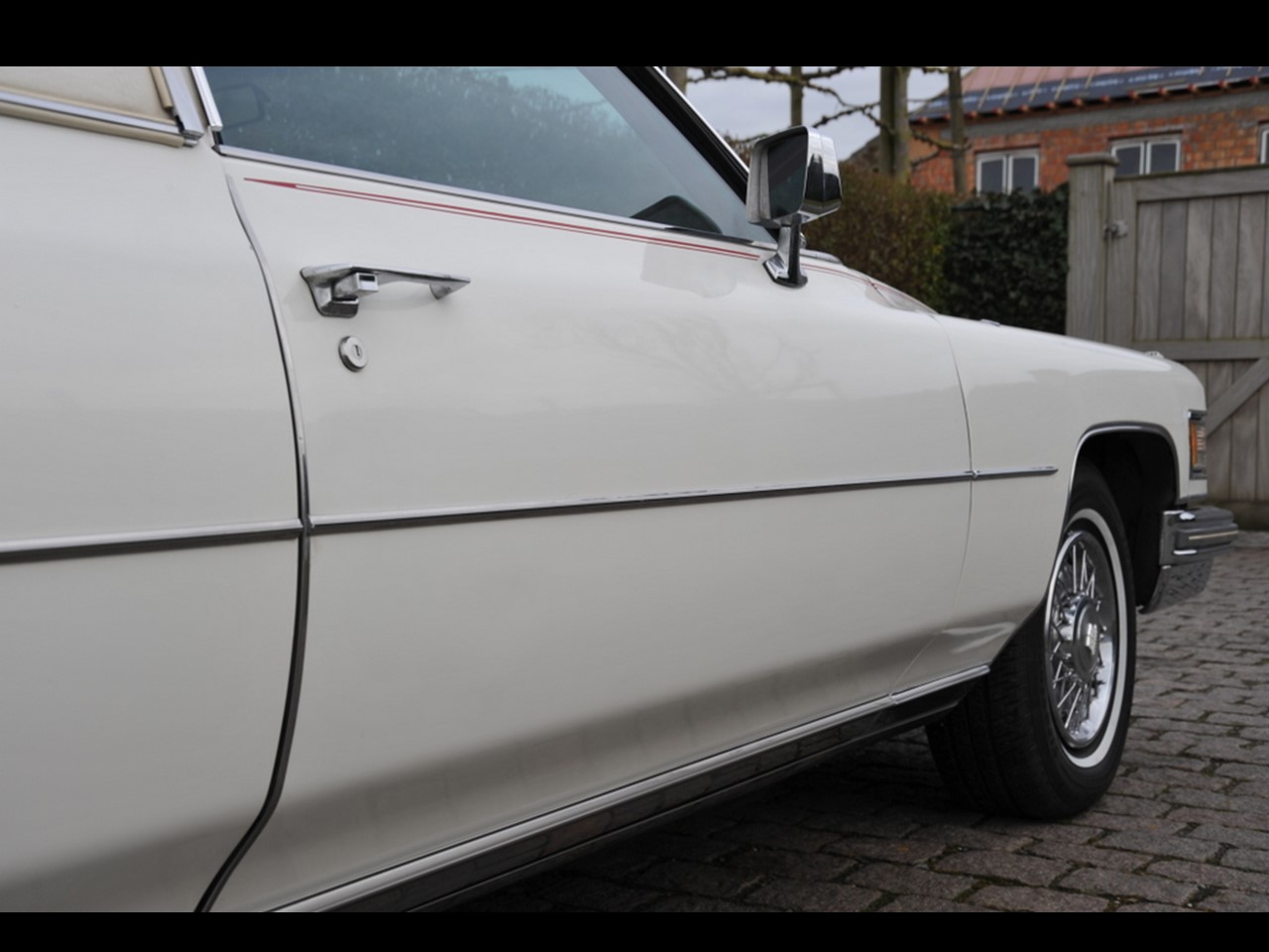 Standard features and accessories for the 1975 Cadillac Calais coupe included: Automatic Climate Control w/economy setting, AM/FM Stereo radio with automatic power antenna, power windows, power door locks, power brakes, Variable Ratio Power steering, Turbo Hydra-Matic Drive, High Energy Ignition System, and lamp monitors to name a few.