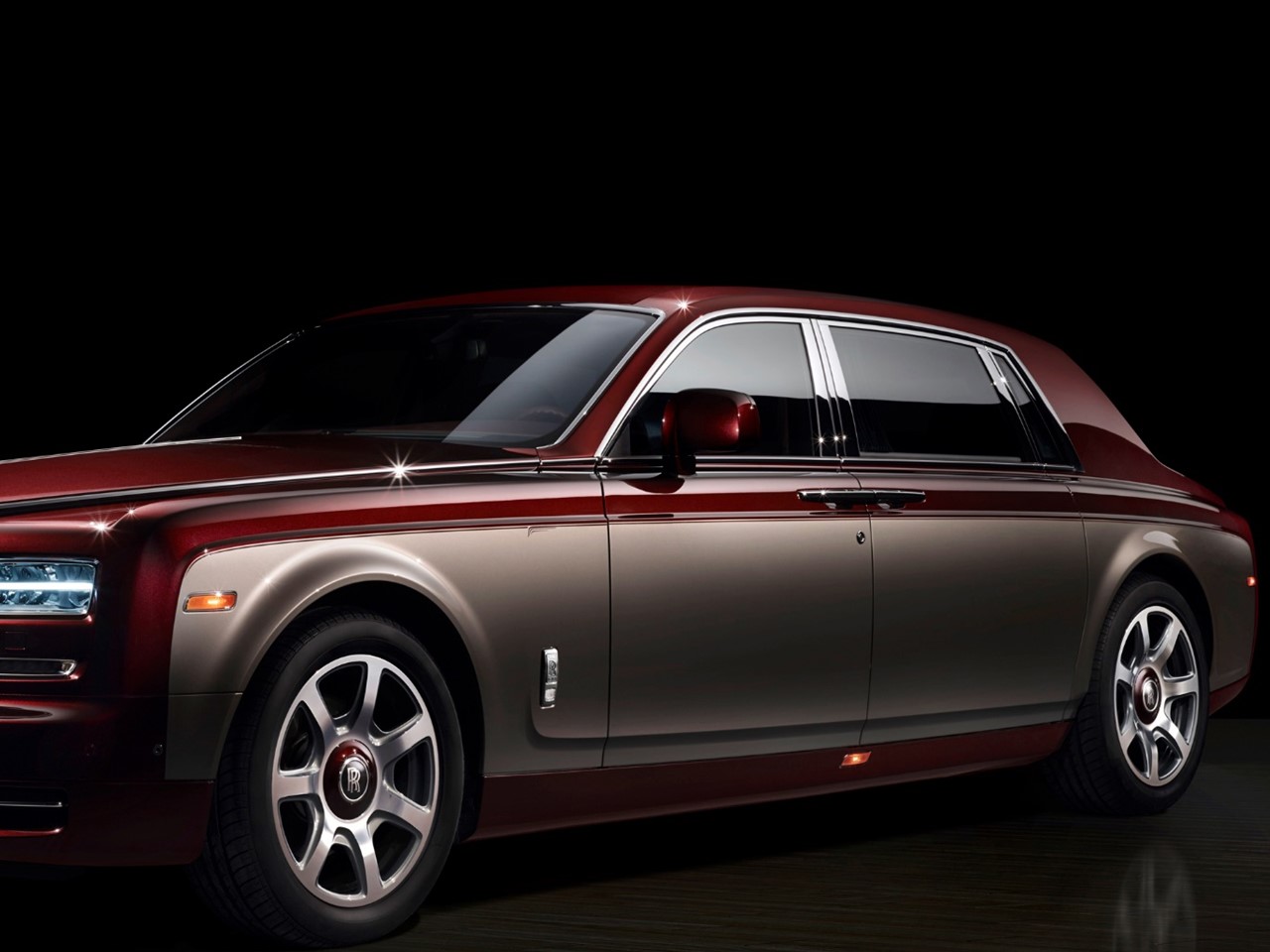 The elegant duo-tone paint finish of Madeira Red is complimented by Silver Sand below the waist rail. It gives the Spirit of Ecstasy a unique sophistication. The serendipity continues with the Madeira Red coach line depicting a streamline train travelling at speed.