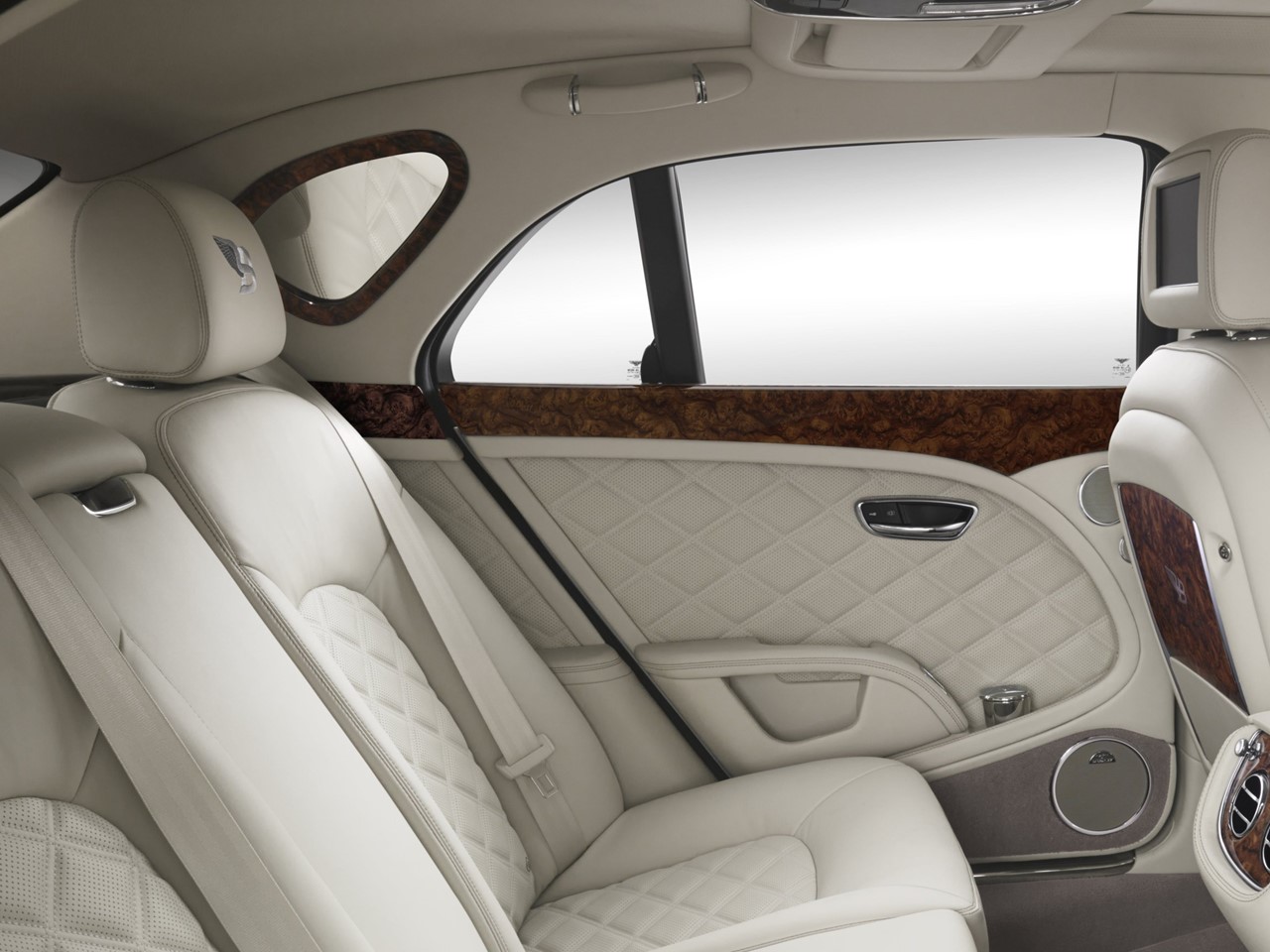 The Birkin Mulsanne includes the Entertainment Specification. The rear compartment comes equipped with the latest multi-media technology. Two 8” LCD monitors are integrated into the rear of the front seat headrests. A Naim for Bentley audio system and iPad work stations are integrated into the hand-crafted solid wood folding tables. The system may be refined for entertainment with a DVD player, Wi-Fi hotspot, or completely bespoke. Or, it can be equipped as a rolling executive board room complete with communication systems, hard drive, and more.