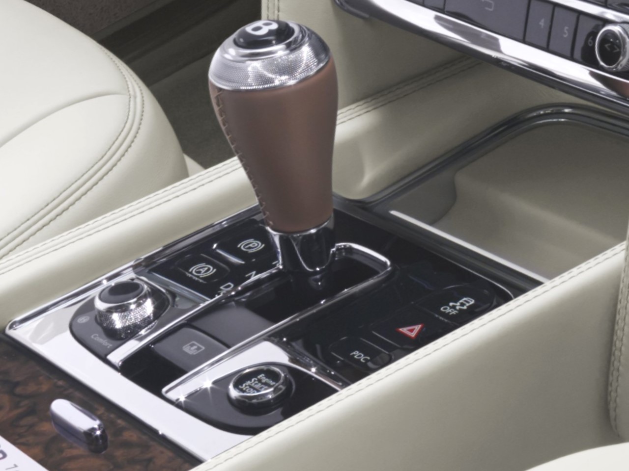 A patent Mulliner bespoke process produces perforations in exact diamond shapes with non-perforated tram lines in between. The cabin is highlighted by knurled metalwork. Other signature features include numbered door sill plates, unique 3-D Flying “B” logos hand-stitched to the headrests and inlaid into the wood of the front fascia and rear seat folding tables. The custom tailored luggage set is hand-crafted, individually numbered and matched to the interior. The warmth of mirror-matched veneers graces the elegant cabin that is as luxurious as it is sporting…