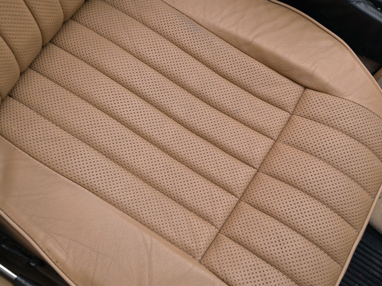 The steering wheel had satin finish aluminium alloy spokes and a rim covered in hand-stitched leather or wood. Also standard were reclining bucket seats, inertia reel seat-belt system, and semi-reclining bucket seats leather faced with ambla panels on non-wearing surfaces.