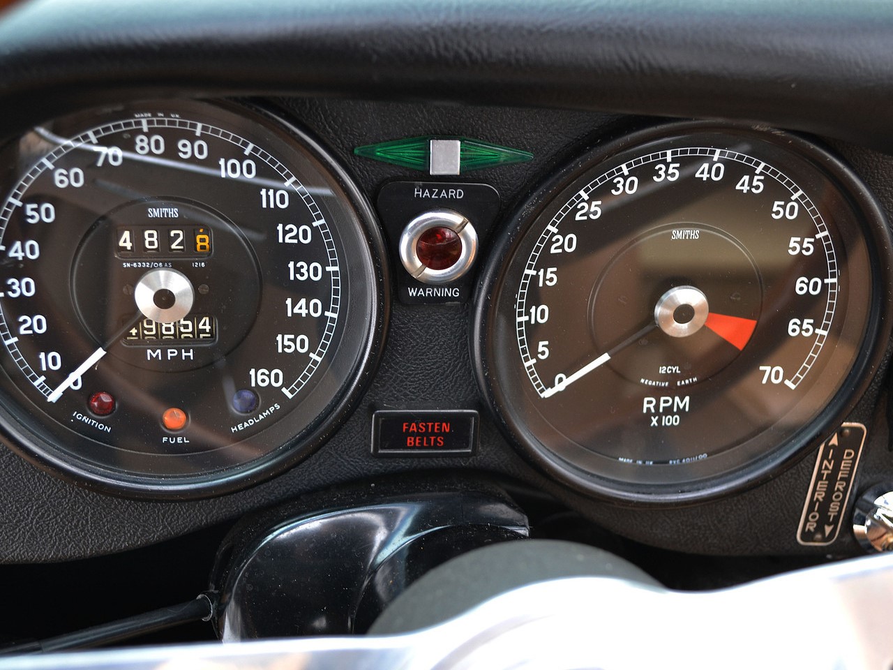 The ultimate cat’s purr was derived from the formidable 5.3 litre 326 CID 24-valve SOHC V12 engine. It was equipped with four Zenith-Stromberg 175 CD2 SE carburetors. She was very quick with performance rated as 0-60 mph in 5.7 seconds, 0-100 mph in 13.9 seconds, with a top speed of 149 mph.