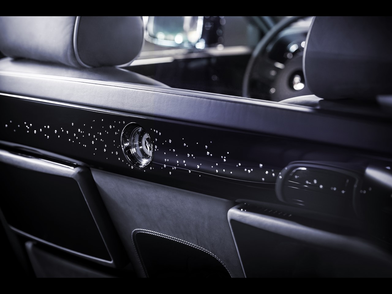 The unique manner in which Rolls-Royce presents a new motor car to the world’s press is unique. This is an extra special Rolls Royce…as there is no other in existence. Hand-set into the Celestial Phantom’s door capping rails, center console lid, and rear privacy divider are 446 diamonds. The one-of-a-kind masterwork celebrates the very first Phantom delivered to the customer at midnight on January 1st, 2003 as the newly formed company under the name “Rolls Royce Motor Cars.”