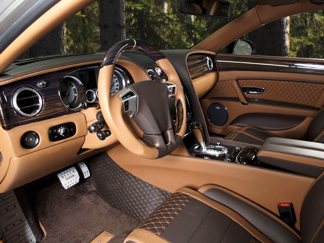 The Mansory Flying Spur is shockingly elegant with a poised dignity that is 100% Bentley. The Mansory Flying Spur is finished in a beautiful tri-tone. Chrome, brown and carbon-work is displayed proudly. The bodyshell and its carbon-fibre construction is highlighted with redesigned sideskirts to give the impression of a much longer vehicle. The Flying Spur’s ride height can be lowered via sophisticated electronic air suspension.
