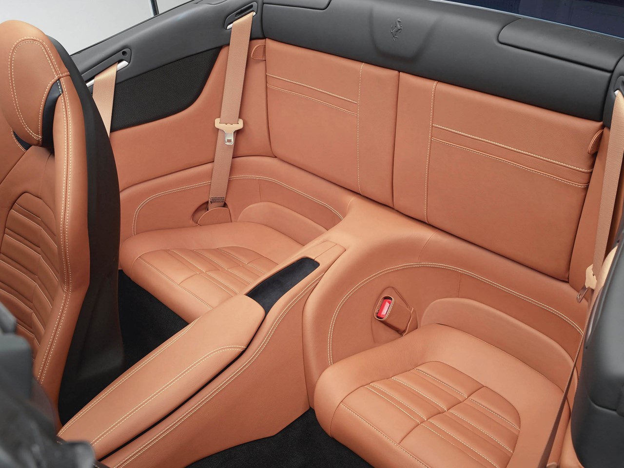 The cabin is ergonomically designed. It is trimmed in luxurious Frau semi-aniline leather. A “2+” seating configuration and available cargo space exhibit the California T’s versatility. Its hardtop stows away in 14 seconds into the top half of the boot. This is the luxury grand tourer from the stable…the tamer version of the Prancing Horse.