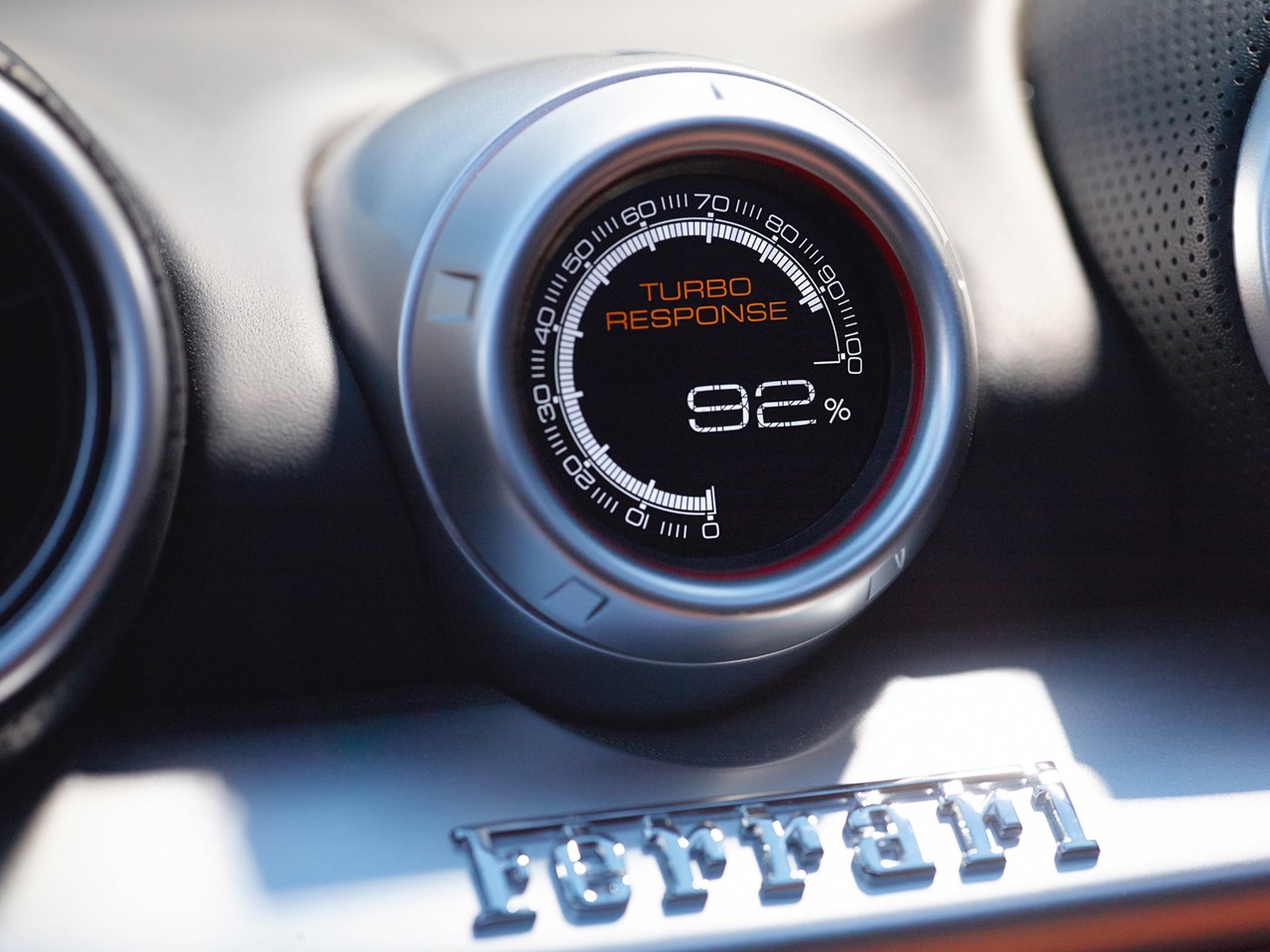 With Ferrari, the human/machine interface is paramount. Steering wheel mounted controls and dash mounted Turbo Performance Engineer (TPE) are part of the California T’s integrated controls to vehicle dynamics. The TPE has touch control with information regarding the engine’s performance. It also features a new infotainment system with an intuitive high-resolution 6.5” screen with touch as well as conventional controls.