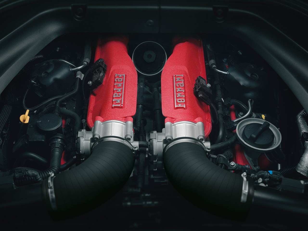 Ferrari engine sounds are harmoniously pitched to create an authoritative sound of power. Both intake and exhaust phases are engaged with the concerto gaining momentum as the rpms increase. A flat plane crankshaft, three-piece cast exhaust manifold, and turbo housing are all ‘tuned’ to manage the tail pipe orchestra. This is the first time sound coordination of this type has been achieved with a turbocharged engine.