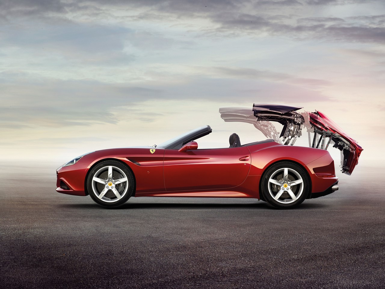 The 2015 California T introduces Ferrari technology. It is the first front engine Ferrari equipped with a V8 engine. More firsts include a 7-speed dual-clutch gearbox, a folding metal roof, a new multi-link rear suspension, and direct fuel injection.