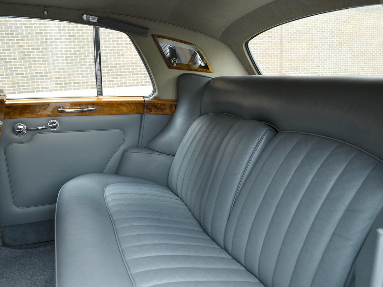 The aromatic scent of natural grain leather wafts through the cabin. The wider front seats were upgraded for the 1964 model year. Connolly Brothers – the masters of the art – takes only the finest hides to create upholstery that rivals fine European furniture. It takes up to 10 perfectly matched hides to create the upholstery for a Rolls-Royce. The same leather is used to pipe the carpets. Hand-cutting, hand-stitching and finishing is done painstakingly slow to create unparalleled elegance. The rejected hides end up as expensive leather goods such as ladies hand bags, shoes, and belts.